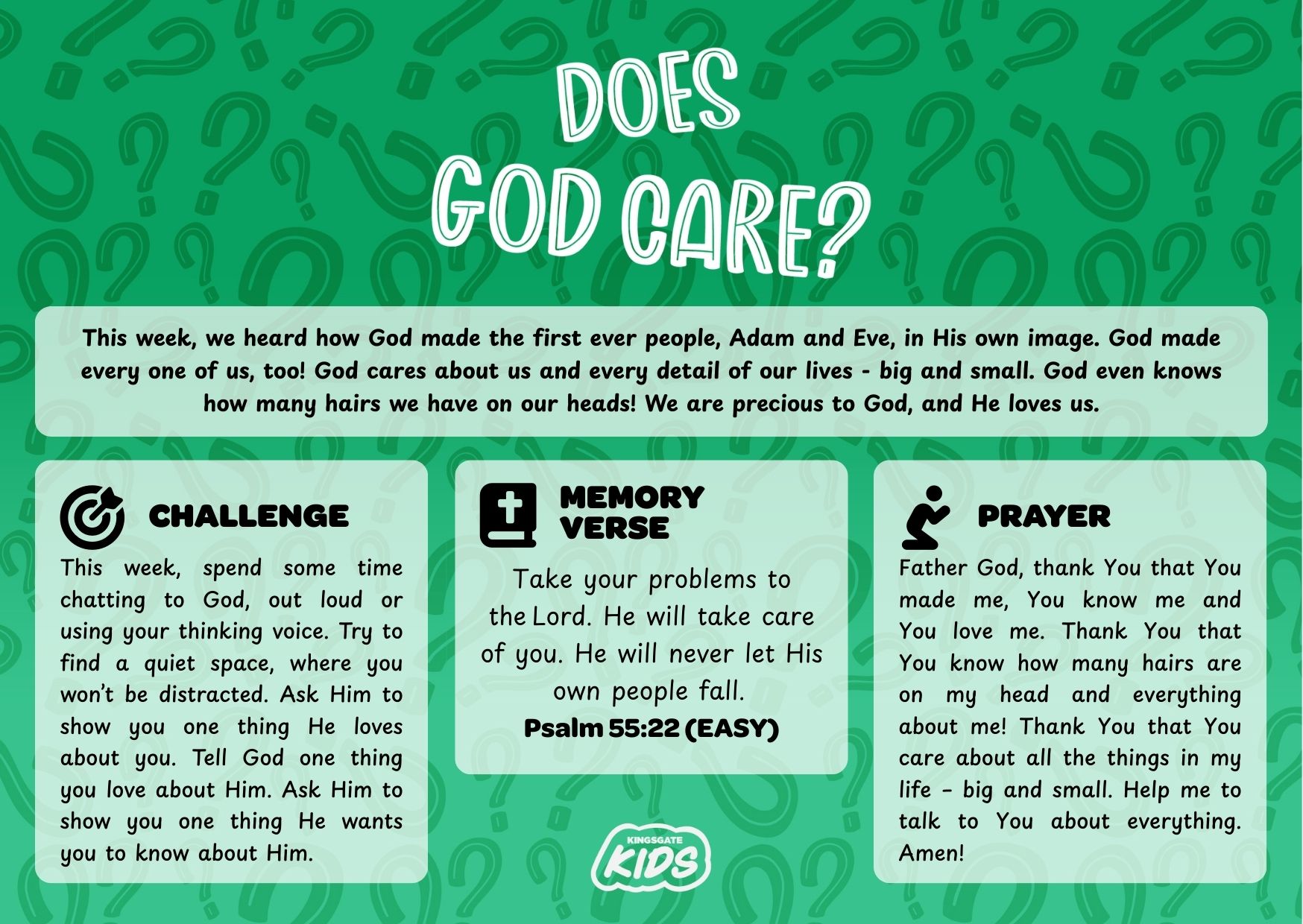 Father God, thank You that You made me, You know me and You love me. Thank You that You know how many hairs are on my head and everything about me! Thank You that You care about all the things in my life – big and small. Help me to talk to You about everything. Amen!