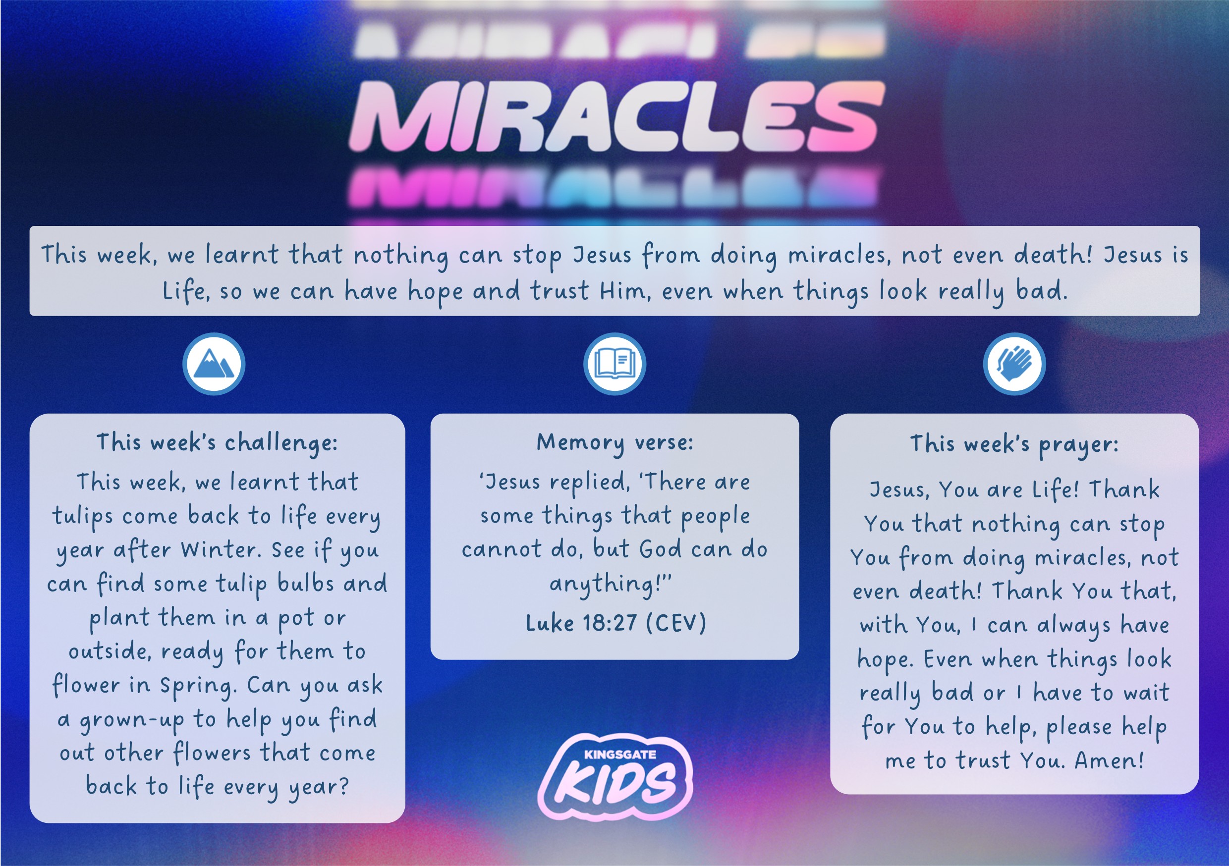 Jesus, You are Life! Thank You that nothing can stop You from doing miracles, not even death! Thank You that, with You, I can always have hope. Even when things look really bad or I have to wait for You to help, please help me to trust You.