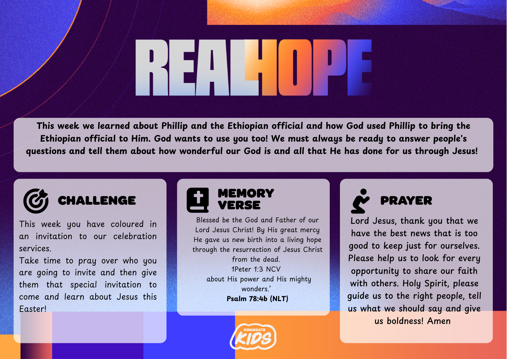 Lord Jesus, thank you that we have the best news that is too good to keep just for ourselves. Please help us to look for every opportunity to share our faith with others. Holy Spirit, please guide us to the right people, tell us what we should say and give us boldness! Amen
